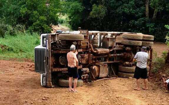 O veículo teria apagado o motor na subida de um cerro. O motorista então teria descido o cerro em marcha ré. Como estava carregado, acabou enroscando numa árvore e tombou.