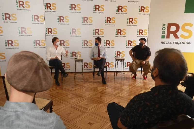 O governador Eduardo Leite recebeu, na manhã desta sexta-feira (4/12), no Palácio Piratini, um grupo de representantes do segmento musical, acompanhados do deputado federal Lucas Redecker. O encontro ocorreu com respeito às regras sanitárias de prevenção contra o coronavírus.