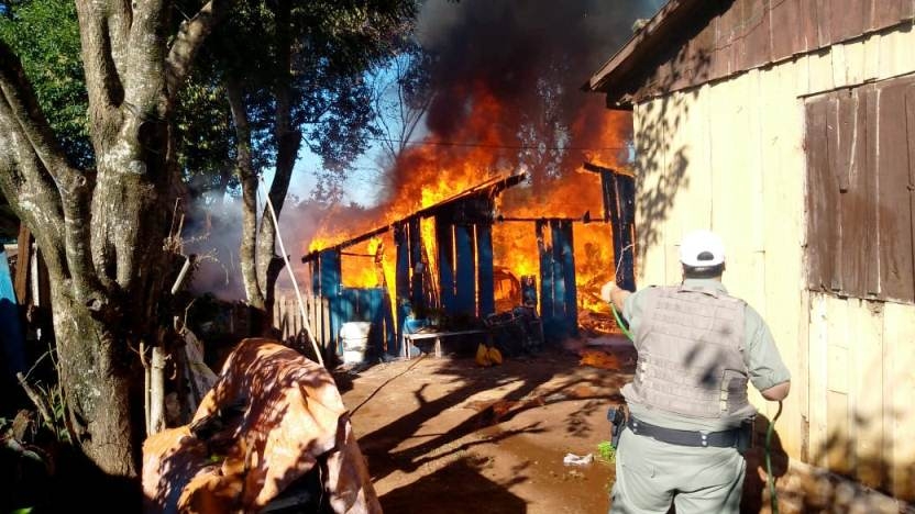 Um incêndio, que teve início por volta das 9h45min, consumiu uma residência localizada na Rua Alexandre Schmidt, nº 420, na Vila São José, em Cerro Largo.