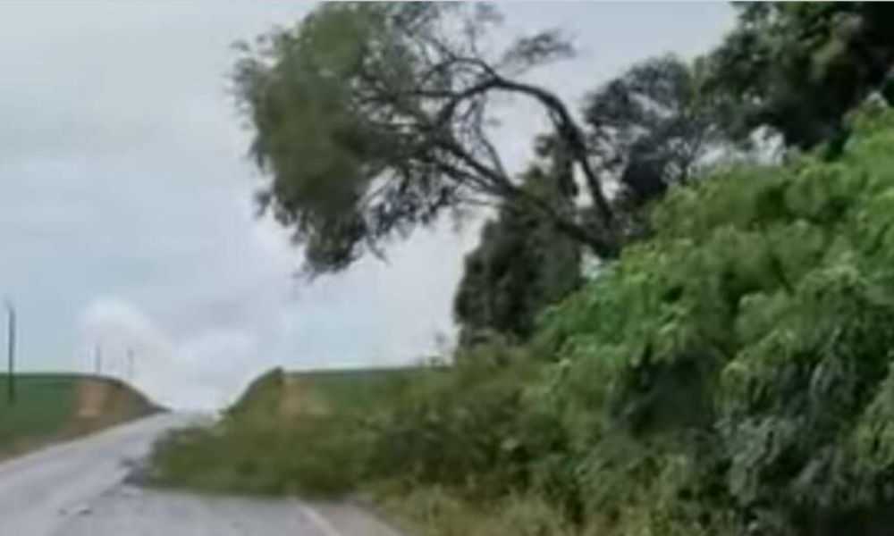 Ibirubá - Ventos fortes derrubaram uma árvore e galhos sobre a ERS 506, dificultando a trafegabilidade no trecho que liga o município à localidade de Alfredo Brenner.