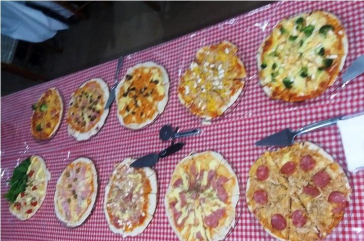 Concluída a oficina, instrutor, alunos, membros da Etnia Italiana e convidados, participaram de um jantar de degustação, quando foi servido um bufê de pizzas com mais de 20 sabores doces e salgados.