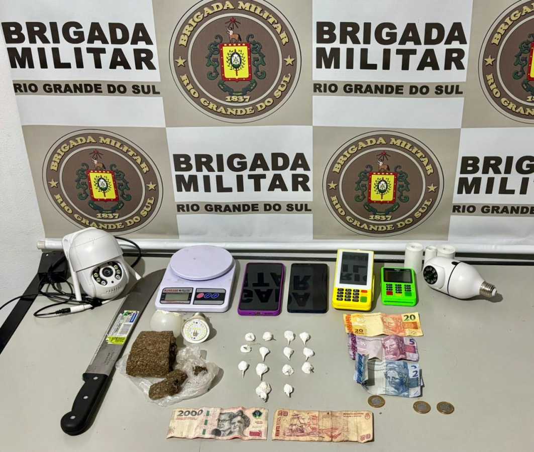 Em diligências complementares, também foram localizados maconha, balança de precisão, dinheiro, um facão e dois telefones.