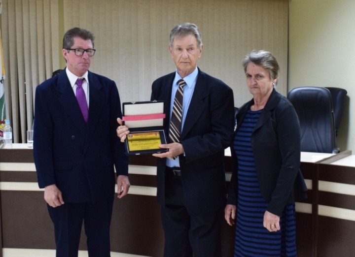 Na sexta-feira, 4 de outubro, dia se comemorou 117 anos de fundação da Colônia Serro Azul, que originou o município de Cerro Largo, a Câmara de Vereadores realizou uma sessão solene para entrega dos títulos de Cidadão Honorário ao professor e historiador Guido Caildo Henz (indicado pelo vereador Andrei Machado - PP) e ao juiz de Direito Marco Antonio Preis (indicado pelo vereador Alberto Frantz Júnior - PDT) e da comenda de Personalidade Emérita ao agricultor e sindicalista José Nelmo Ten Caten (indicado pelo vereador Lauri Felipe Wilchen - PT). Além dos edis, a sessão foi prestigiada pelo prefeito Valter Hatwig Spies, demais autoridades, familiares e amigos dos homenageados.