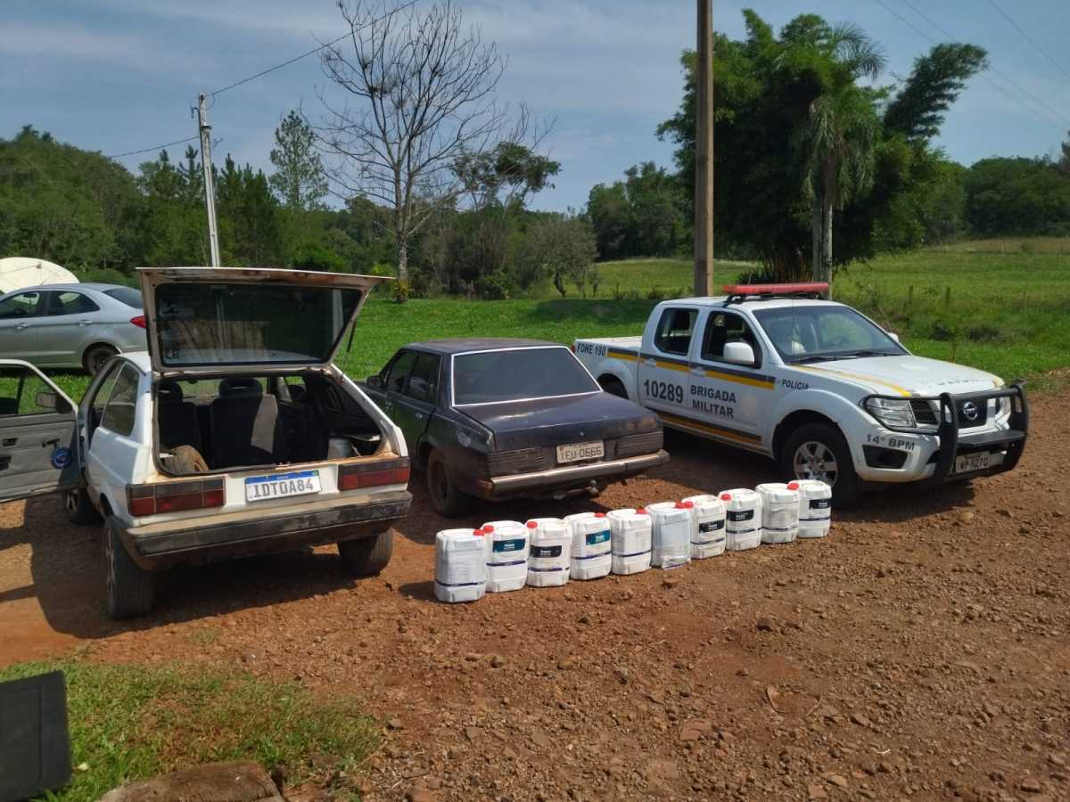 Foram apreendidos 10 galões de 20 litros de Paraquat Sigma, herbicida argentino, o veiculo Gol e o veiculo Del Rey.