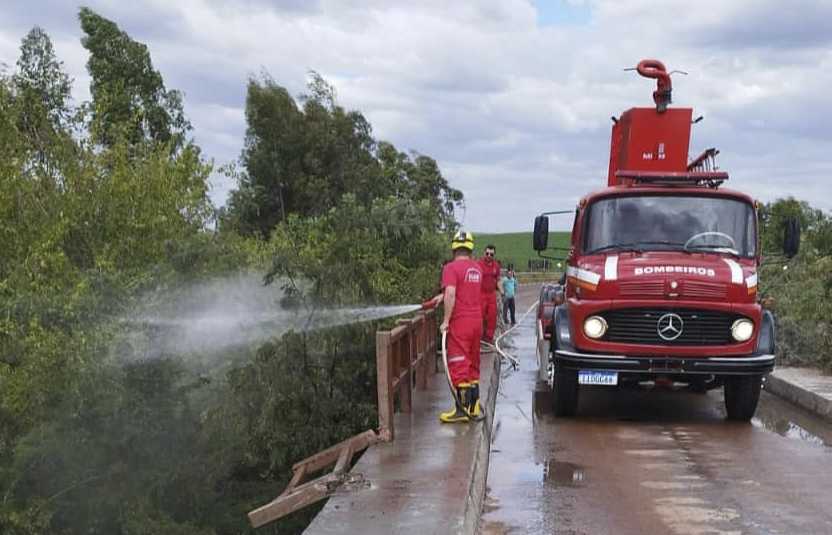 Ontem (19/4), bombeiros voluntários de Cerro Largo realizaram a limpeza da ponte localizada na RS 165, sobre o Rio Comandai, na divisa de Cerro Largo (Linha São João Norte) e Campina das Missões (Linha Ressaca).
