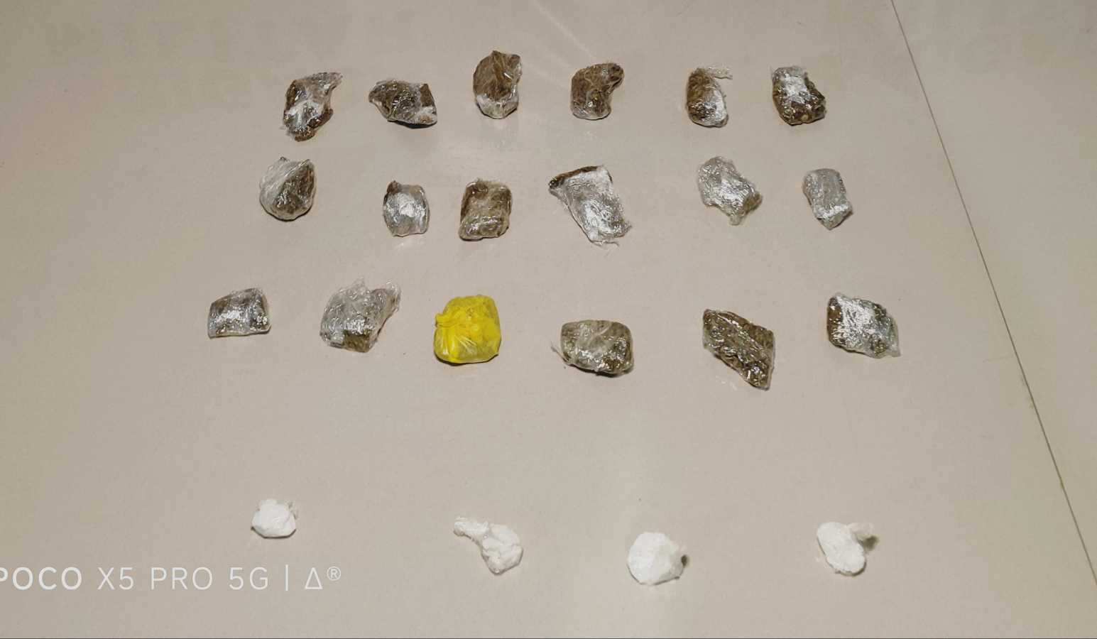 Durante a revista, foram encontradas 18 porções de maconha e quatro porções de cocaína.