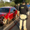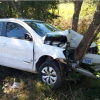 Saveiro saiu da pista e colidiu numa árvore às margens da BR 287