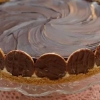 Sobremesa com biscoitos, recheio cremoso e cobertura de chocolate