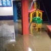 Chuva causou alagamento nas salas de aula e no saguão da escola