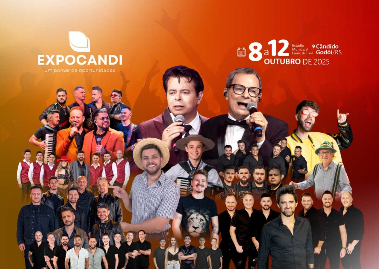A Expocandi 2025, que acontece de 8 a 12 de outubro, em Cândido Godói, já se destaca pela programação variada que vai movimentar os dois palcos do evento. As noites serão marcadas por grandes shows e bailes, com estilos que vão do tradicionalismo ao sertanejo, passando pelo rock e pelas clássicas bandas de baile.