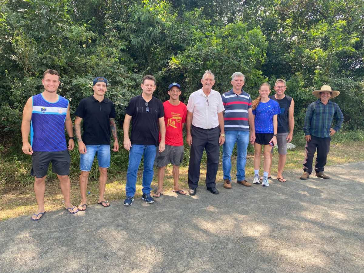 Na entrega simbólica, estavam presentes os atletas Jean Oliveira da Silva, Rodrigo Petri, Fernanda Sandri Schneider, Dhione Nascimento e o pai da Fernanda, Fábio Schneider. Pela Administração estavam o prefeito Pedro Butzen, o secretário de Esportes Geri Minikel, secretário de Obras Leandro Mumbach e o colaborador Pedro.