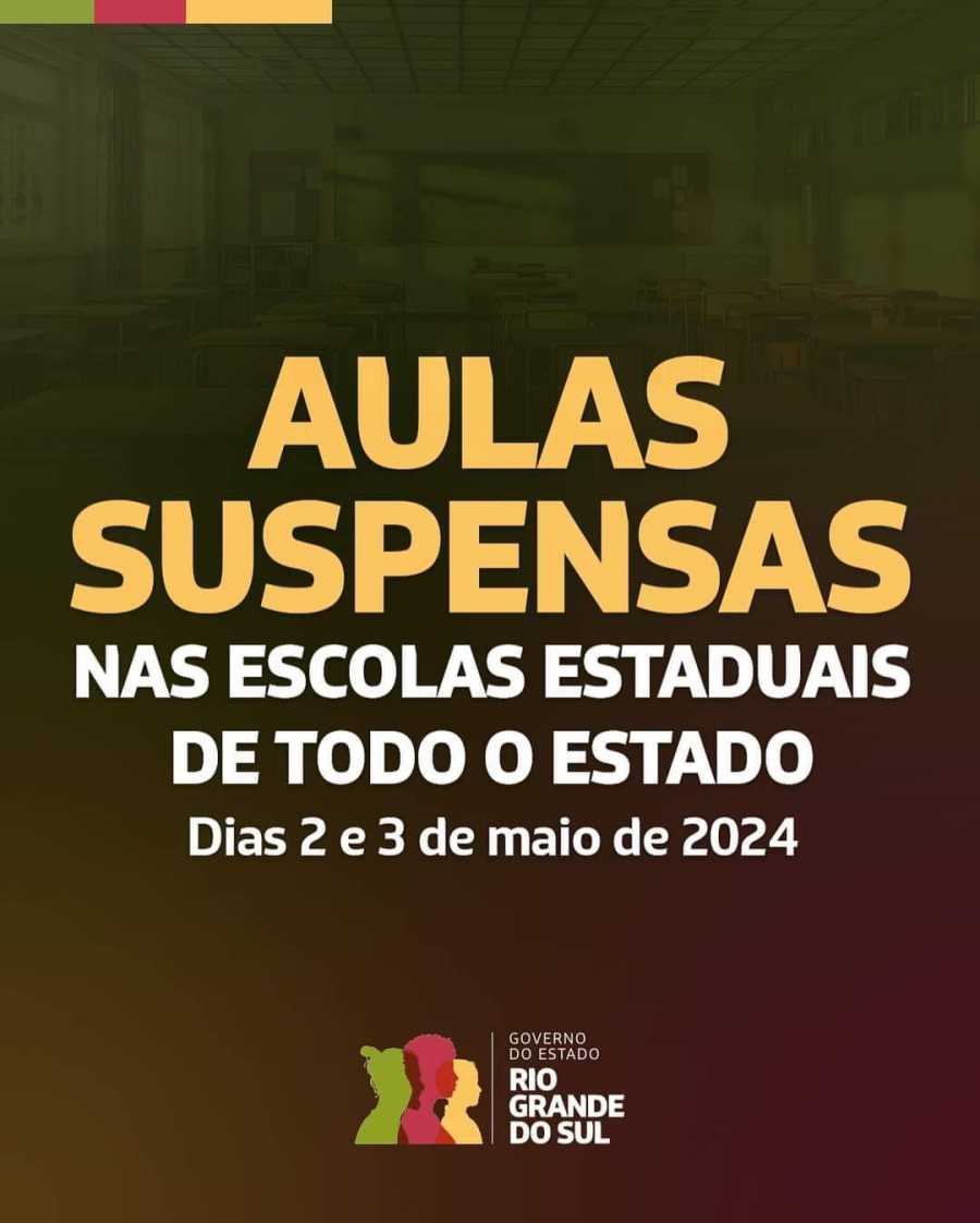 Em coletiva de imprensa no final da tarde desta quarta-feira (1°/5), o governador Eduardo Leite informou a suspensão em todo o estado das aulas. A suspensão será nesta quinta e sexta-feira.