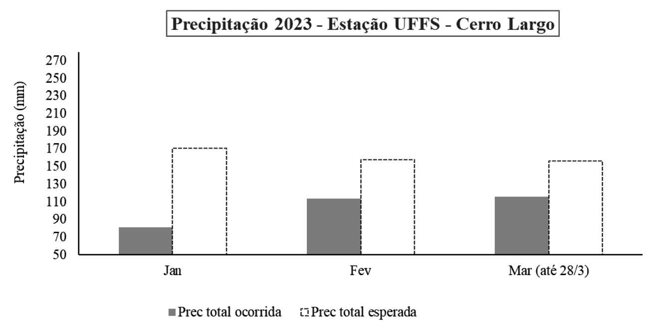 As precipitações nos meses de verão ocorreram de forma irregular, mal distribuídas na região e, de maneira geral, ficaram abaixo da média nos municípios da região. Essa ocorrência de precipitações localizadas e irregulares, por vezes, em grandes quantidades e observadas em curtos períodos de tempo, fizeram variar o acumulado de chuva na região. Em Cerro Largo ocorreram maiores precipitações no mês de fevereiro (114 mm), ao passo que, na estação da UFFS, em Roque Gonzales, por exemplo, em fevereiro choveu 58mm.