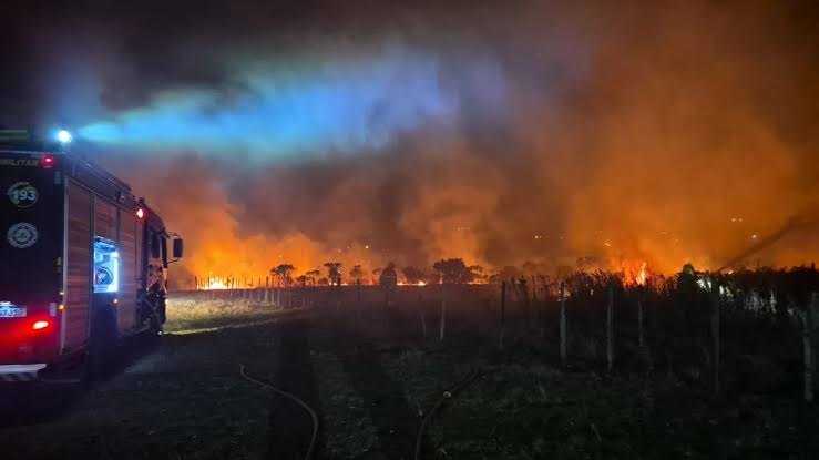 Um incêndio destruiu 7,5 hectares de vegetação em Palmeira das Missões. A área é equivalente a sete campos de futebol. O fogo começou por volta das 22h de sexta-feira (22/08) em uma lavoura no bairro Vista Alegre.