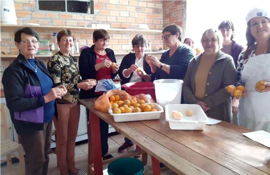Segurança e Soberania Alimentar, onde foram elaboradas schmier e geleia de bergamota, fruta disponível nas propriedades das participantes.