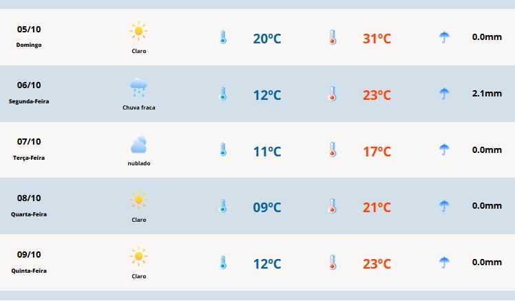 Em Cerro Largo a temperatura vai oscilar entre 20°C e 31°C.