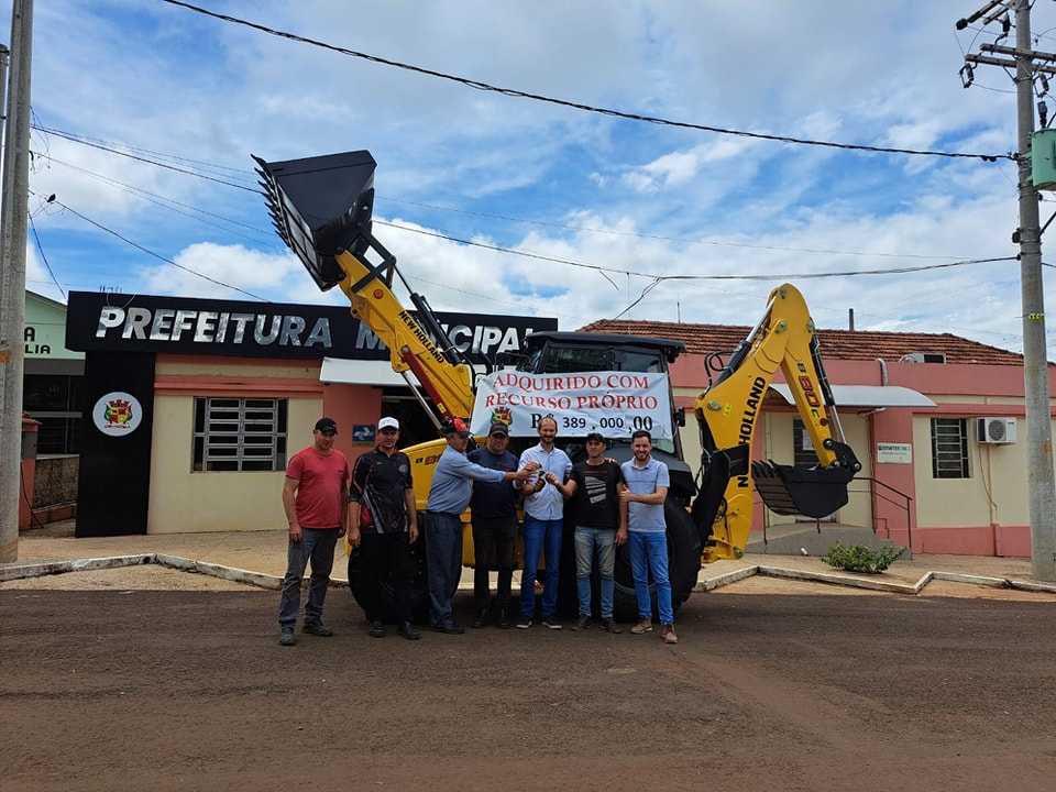 Nesta segunda-feira (04/03), em frente à Prefeitura Municipal, aconteceu a entrega simbólica de uma retroescavadeira nova, a terceira adquirida nesta Administração.