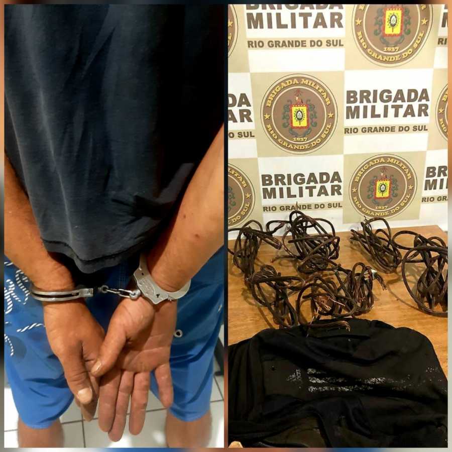 A guarnição permaneceu em buscas nas proximidades do local, sendo que por volta das 4h da manhã foi possível a abordagem do indivíduo, de 31 anos de idade, descendo do telhado do armazém em posse de uma mochila, na qual continha aproximadamente 8 quilos de cabo de cobre 25 mm de espessura.