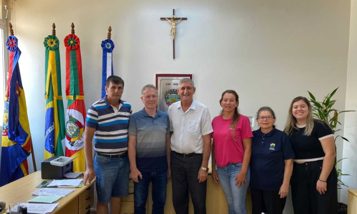 Estavam presentes, Mariléia Thum e Fátima Sulzbacher, pela APAE, e Ivo Konzen e Darci Scheid, presidente e vice do Lar do Idoso Conviver, bem como a secretária da Administração Thana Lopes.