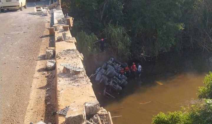 No local, constatou-se que um caminhão sem emplacamento, com destino à exportação, havia caído da referida ponte.