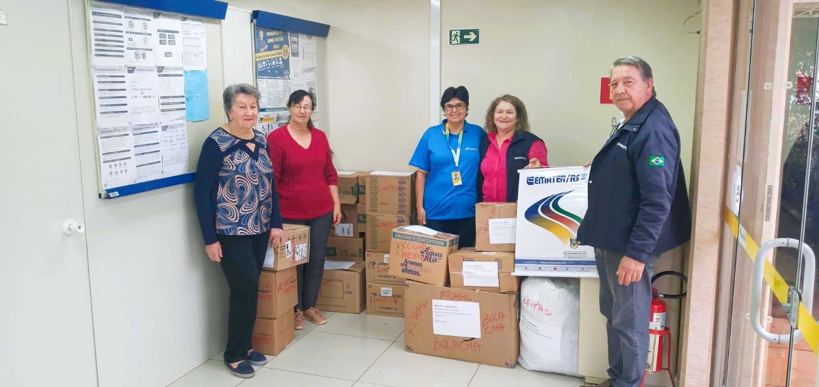 Materiais de limpeza e de higiene arrecadados durante os Jogos Rurais Sol a Sol, promovidos pela Emater, Prefeitura, Clube União e Capela São Roque, também estiveram entre as doações encaminhadas nesta semana.