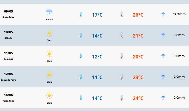 A temperatura terá mínima de 17 graus e máxima de 26 graus.