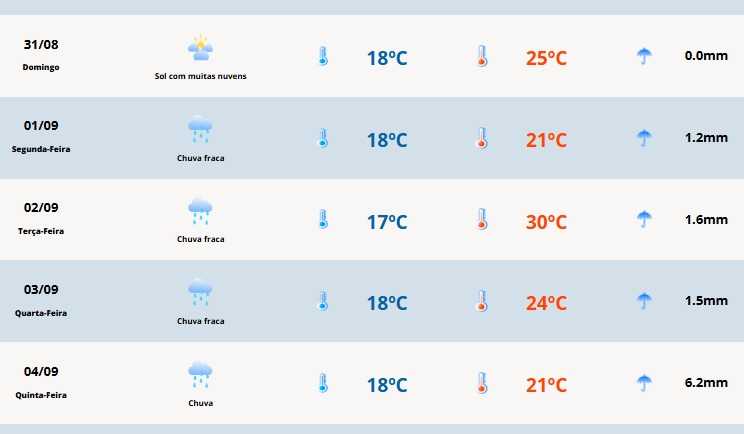 Neste domingo (31/08), as temperaturas se mantém altas, mas haverá a formação de áreas de instabilidade associadas a um ciclone na Argentina, que devem provocar o aumento de nuvens nas regiões Oeste e Sul, com chuva localizada em pontos da Metade Oeste do Estado.