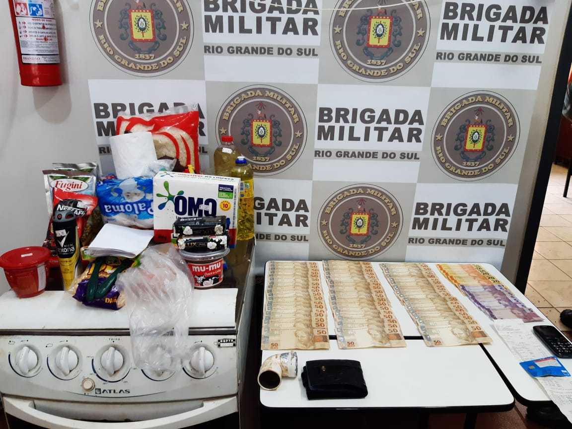 O acusado acabou informando que havia efetuado o saque com o cartão. O mesmo informou ainda que estaria na posse de produtos adquiridos e pagos com o referido cartão, entregando aos policiais militares os produtos adquiridos no comércio de Bossoroca.