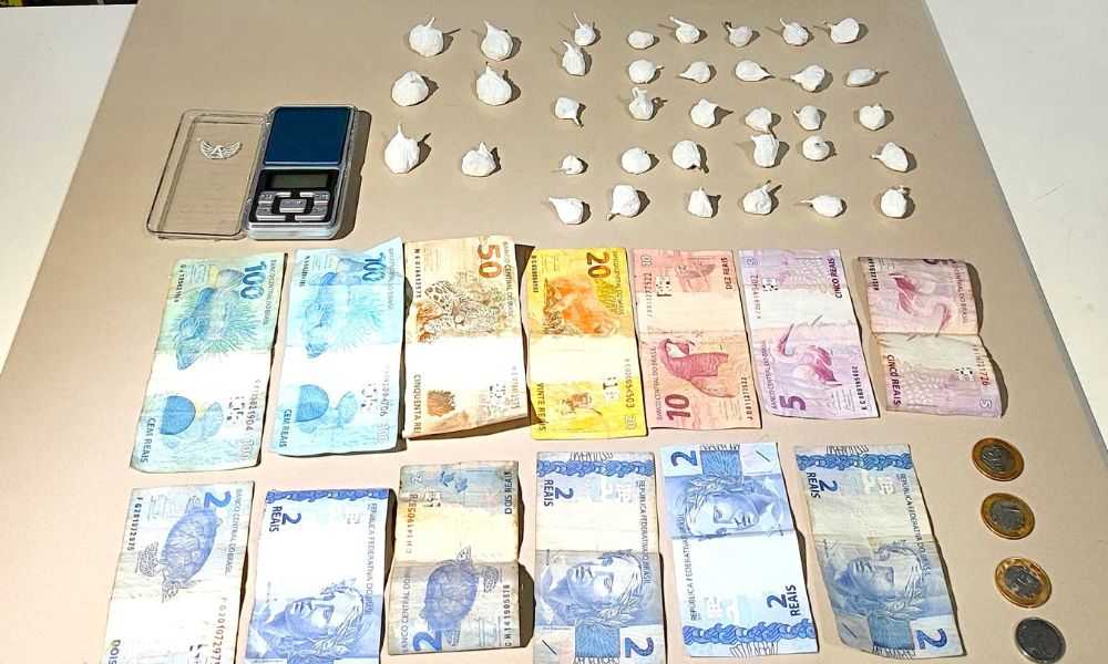 Após a Brigada Militar receber informações de que havia uma mulher efetuando a comercialização de drogas, a guarnição realizou diligências, que culminaram com a abordagem da jovem, sendo encontrados com ela 36 petecas de cocaína (totalizando 45 gramas), uma balança de precisão e R$ 305,00 em espécie.