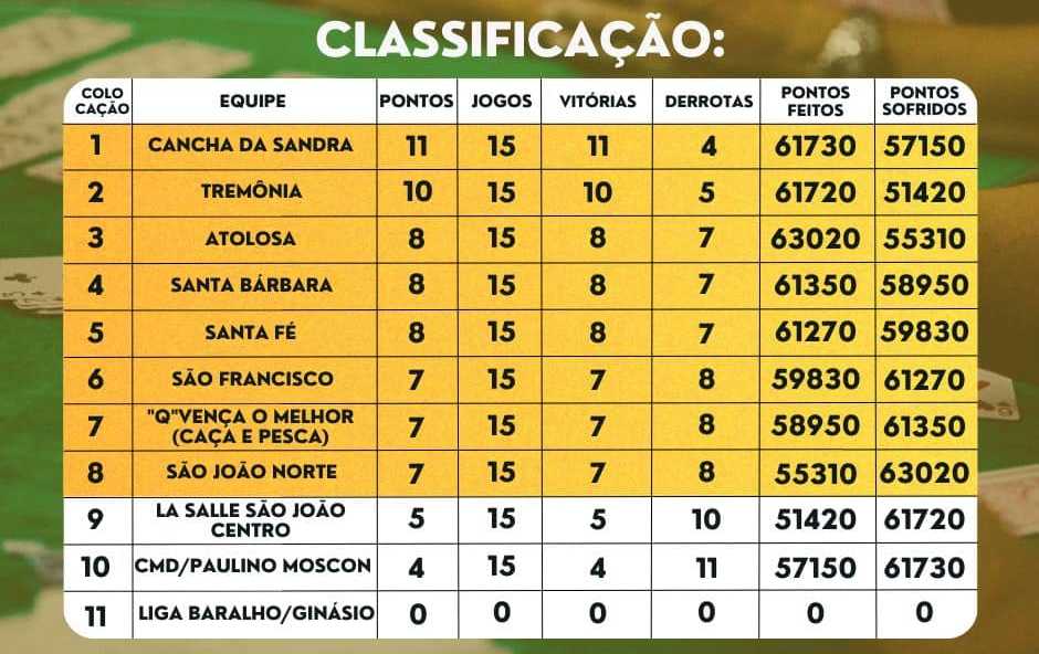 A classificação pode ser conferida na imagem.