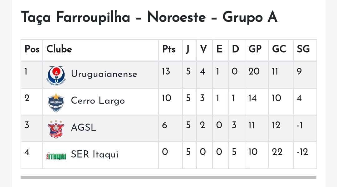 Uruguaianense, com 13 pontos, e Cerro Largo, com 10, estão classificados às semifinais.