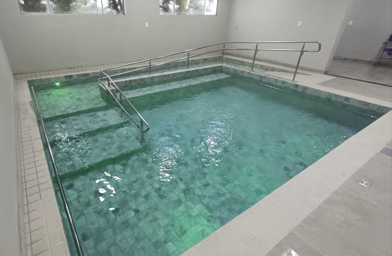 O sistema de aquecimento da piscina foi projetado para garantir conforto durante todo o ano, podendo funcionar tanto com energia solar quanto elétrica, alcançando temperaturas de até 34°C em dias mais frios.