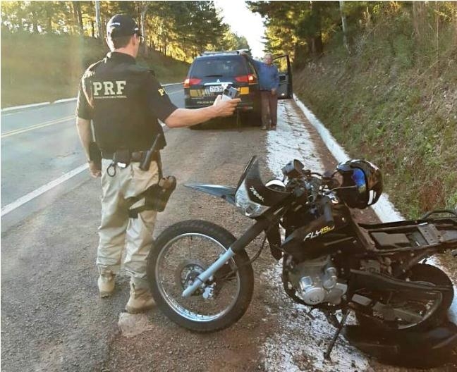 Ao chegar no local, os agentes encontraram apenas uma motocicleta, sendo que a condutora, de 22 anos, de Santiago, já havia sido encaminhada ao Hospital da cidade, com fratura em uma das pernas.