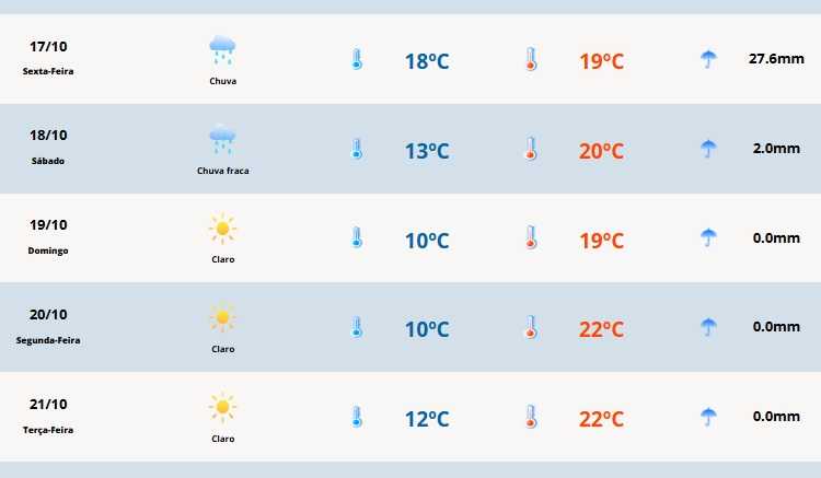 Nessas regiões, a chuva pode vir acompanhada de raios, trovoadas e risco de granizo isolado. Na Metade Sul, os volumes serão menores, e no extremo Sul o sol deve aparecer entre nuvens. A temperatura permanece agradável na maior parte dos municípios.