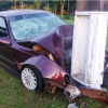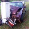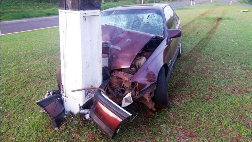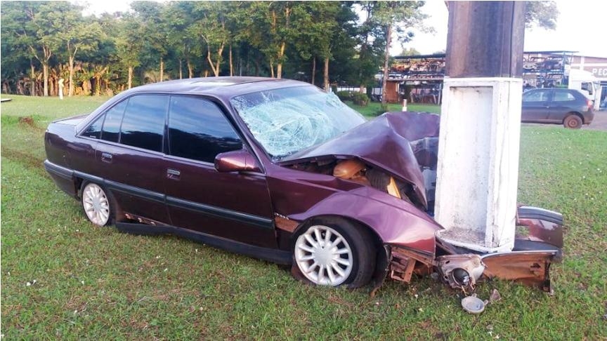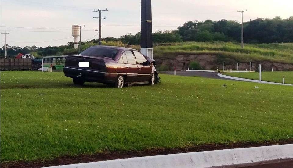 Um GM Ômega GLS, cor bordô, que transitava no sentido Salvador das Missões/Cerro Largo, entrou reto pelo canteiro do trevo e bateu violentamente contra um poste de iluminação pública, ficando com a parte frontal destruída.