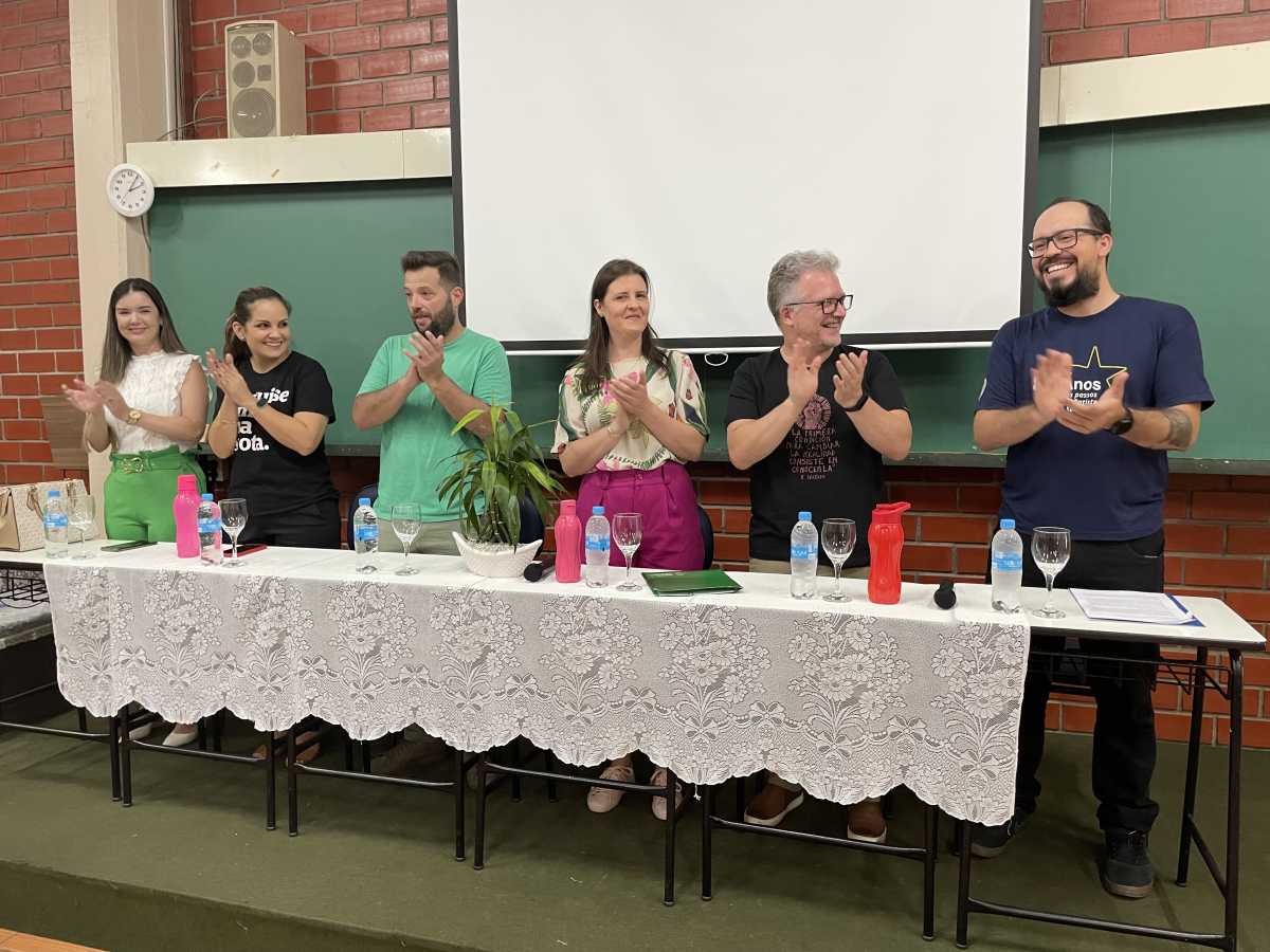 As falas dos participantes, especialistas em diversas áreas do conhecimento, foram mediadas pelo professor lassalista Cleiton Reidorfer, que apresentou os educadores Marcus Vinicius Fontana (área de Língua Espanhola e Linguística), Fernando Henrique Borba (Engenharia Química), Judite Scherer Wenzel (Educação), Angelise Fagundes da Silva (Língua Espanhola) e Alcione Alves (Engenharia Ambiental).