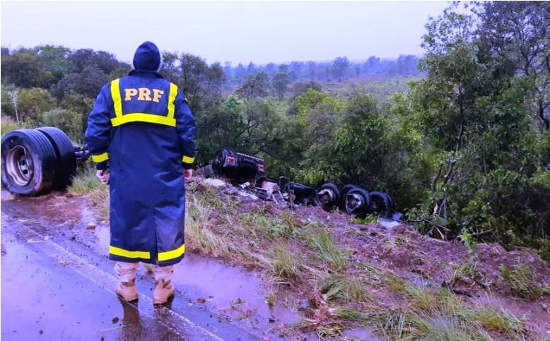 No momento do acidente chovia forte na região.