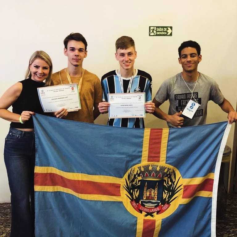 Na última semana, de 28 de novembro à 1º de dezembro, os estudantes da Escola Estadual Eugênio Frantz, Gustavo Henrique Luft, Vitor Rafael Back e Rãnye Praia Caitano, juntamente com a professora orientadora de Geografia Carine Guth, estiveram em Campinas (SP), representando Cerro Largo e o Rio Grande do Sul na Olimpíada Brasileira de Geografia.