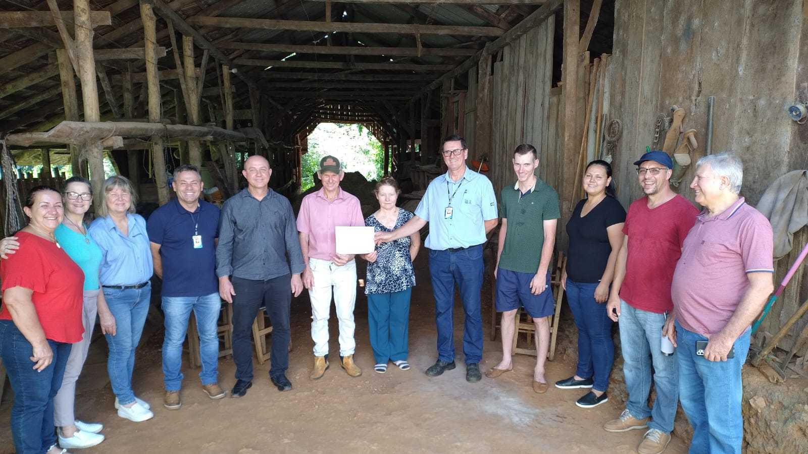 Acompanharam a entrega da certificação, representando a Emater, o gerente regional Valmir Thume, a gerente regional adjunta, Ivânia Polaczinski, os assistentes técnicos regionais Jorge Lunardi e Lisete Primaz, assim como os extensionistas do Escritório Municipal, Antônio Jung, Felipe Bieger e Teresa Szast. O prefeito de Campina das Missões, Carlos Justen, também esteve presente e enalteceu a iniciativa da família em investir no empreendimento e desejou muito êxito na atividade escolhida para agregar valor à produção primária da propriedade.