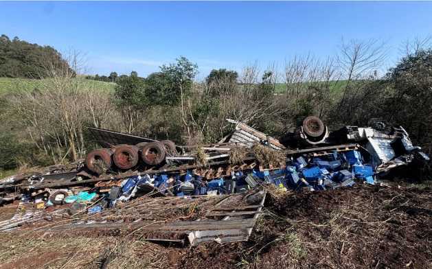 O acidente aconteceu no Km 400 da rodovia e resultou em ferimentos no condutor do caminhão. A vítima foi encaminhada para atendimento médico no hospital de Santa Bárbara do Sul.