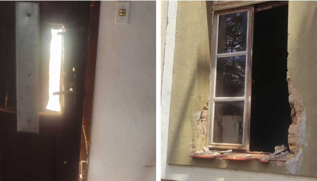 De imediato a guarnição de serviço deslocou para averiguar, sendo abordado um homem de 33 anos de idade saindo do local, de posse de alguns objetos, uma extensão de 20 metros de comprimento, seis metros de fio de luz, três lâmpadas, uma bicicleta artesanal, sendo constatados danos no prédio e no prédio do Emaús, que também foi alvo de furto, sendo dado falta de uma caixa de som e dois microfones, os quais não foram localizados.