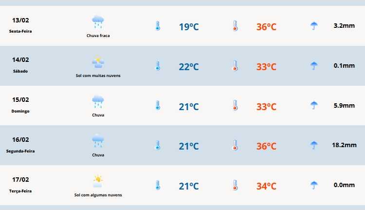Em Cerro Largo, as temperaturas oscilam entre 19°C e 36°C.