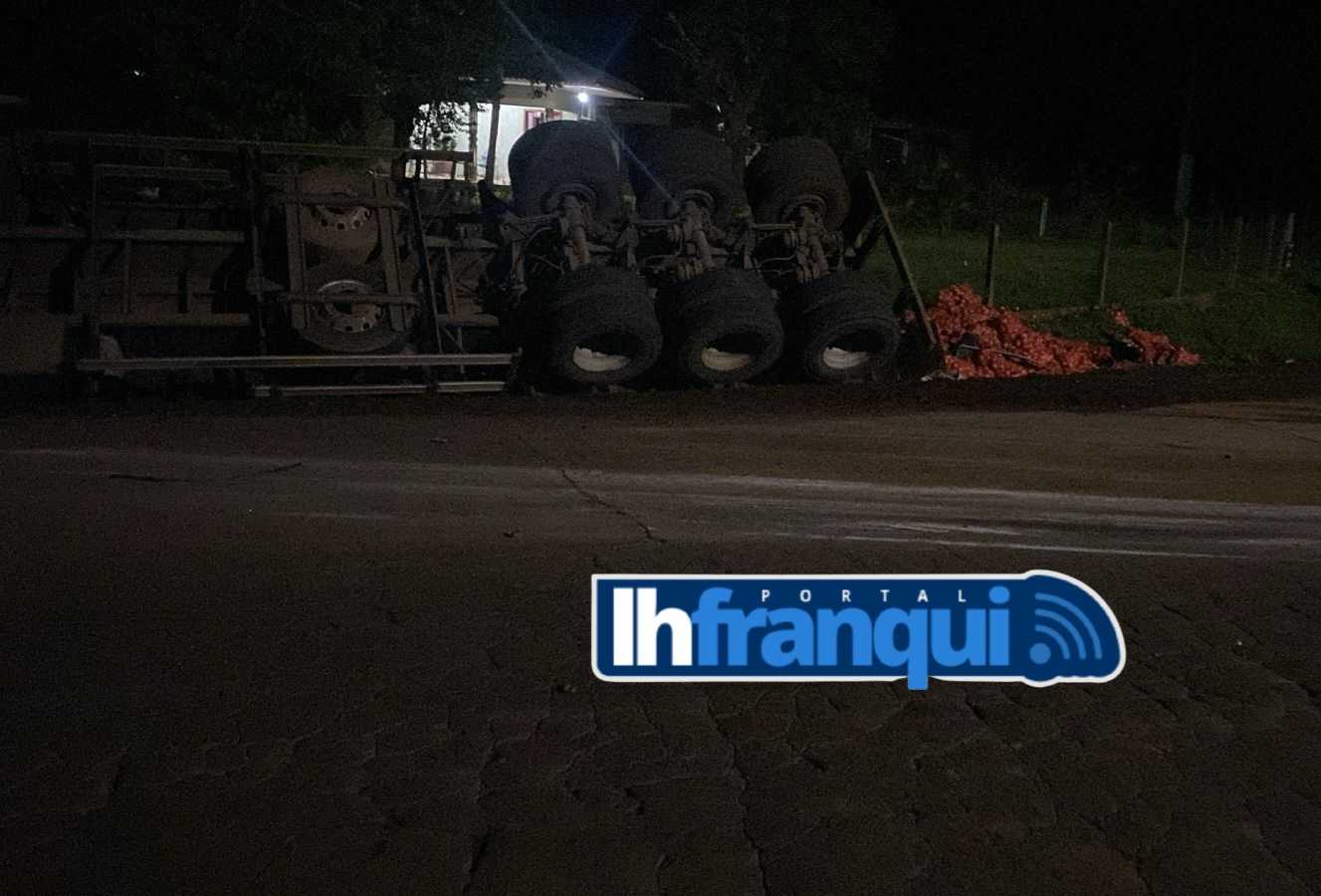 Na noite de sexta-feira (26/04), um caminhão carregado com carga de cebolas acidentou-se na rodovia BR 392, no município de São Pedro do Butiá.