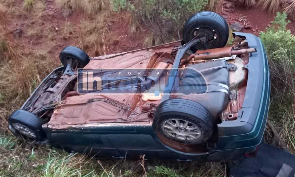 No local, havia um automóvel VW Golf GLX, com placas de Tucunduva, que transitava no sentido Cerro Largo/Guarani das Missões, quando saiu da pista e ficou em um declive no barranco, às margens da via, na iminência de cair. O Golf estava apoiado pela plataforma do veículo - quase tombando.