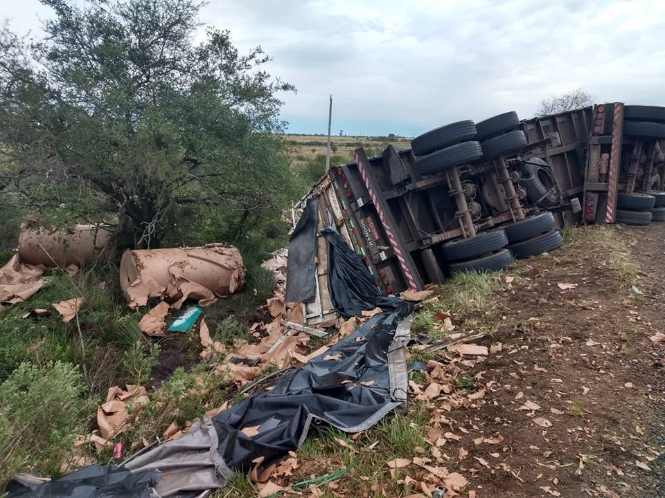 No local verificou-se que um conjunto bitrem, da cidade de Xanxerê (SC), que deslocava em direção a Itaqui, havia tombado, invadindo a pista contrária e parando no acostamento.