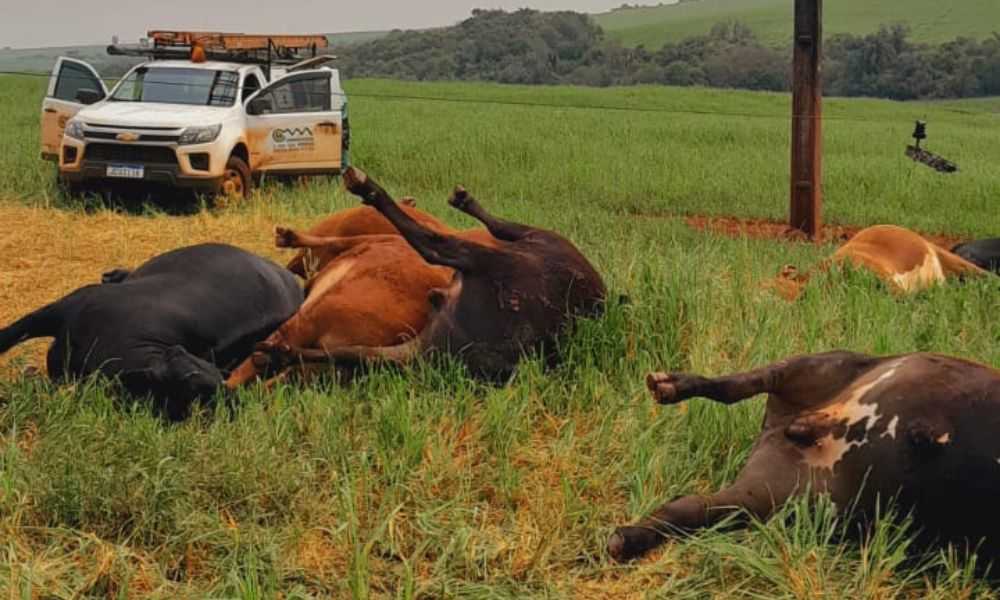 Os animais foram eletrocutados após um cabo energizado ficar suspenso devido à quebra de uma cruzeta de sustentação da rede elétrica, possivelmente danificada por um raio durante o temporal que atingiu a região na madrugada anterior.
