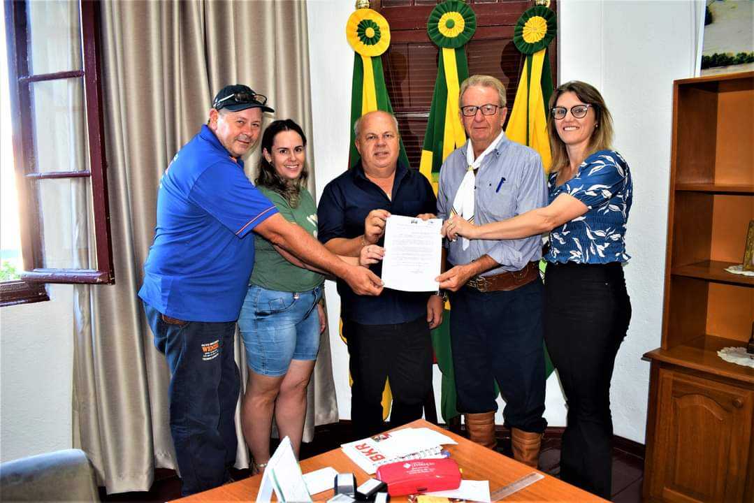 Também estavam no Gabinete a secretária de Educação e Cultura, professora Cheila Spies e integrantes da patronagem do CTG, 1° capataz Jorge Wenzel e 1° capataz fiel Camila Schlotfeld.