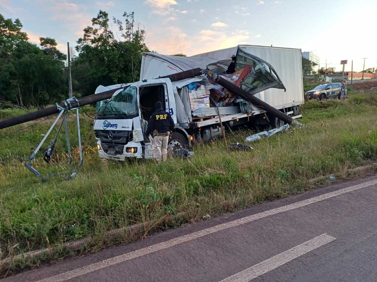 O motorista de um caminhão, com placas de Passo Fundo, perdeu o controle do veículo e acabou colidindo contra postes às margens da rodovia. Em virtude do forte impacto, o condutor — que ainda não foi identificado — morreu no local do acidente.