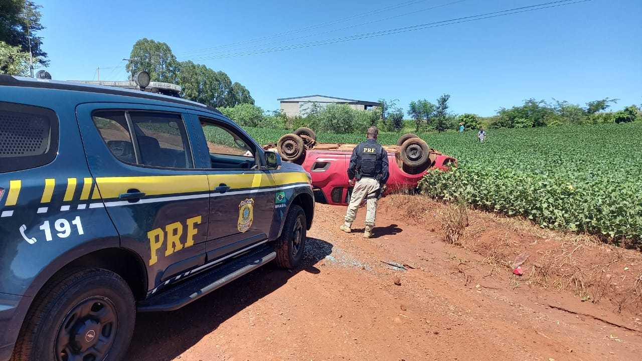 A equipe PRF seguiu atrás do veículo, que deslocou pela RS 342 e depois por uma estrada de terra, onde o motorista perdeu o controle do carro e capotou, sendo preso.