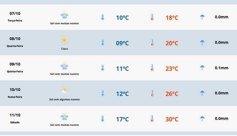 Nuvens ainda são esperadas entre a madrugada e o período da manhã na Metade Norte, além disso, não se descarta a possibilidade de chuva fraca em alguns pontos. Porém, no decorrer do dia a nebulosidade diminui e dá lugar ao sol.